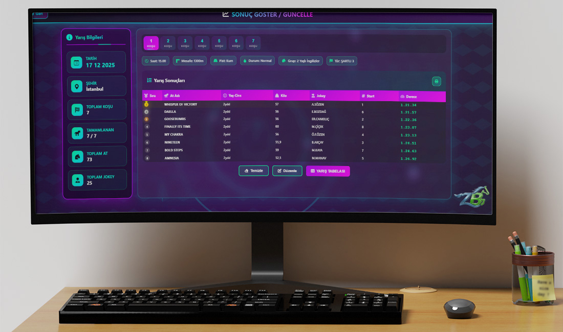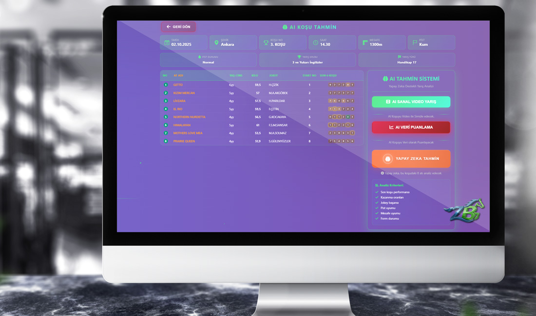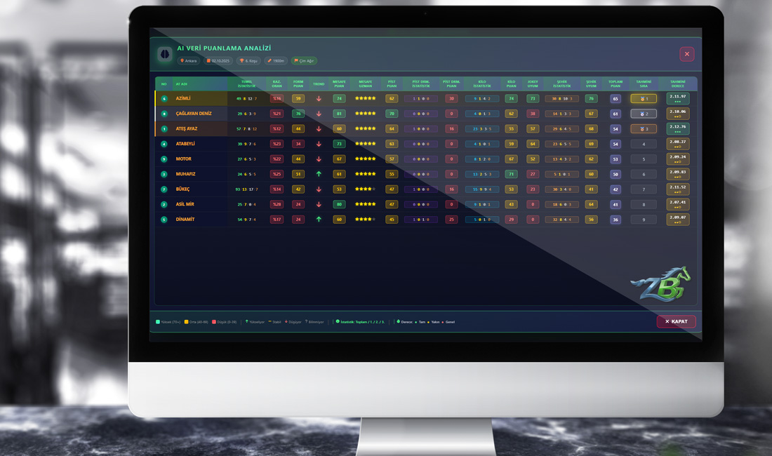 ⚠️ Önemli Bilgilendirme: ZekiBeygir; geçmiş yarış verileri, istatistiksel analizler ve yapay zeka algoritmaları kullanarak at yarışı tahminleri üreten bir karar destek yazılımıdır.